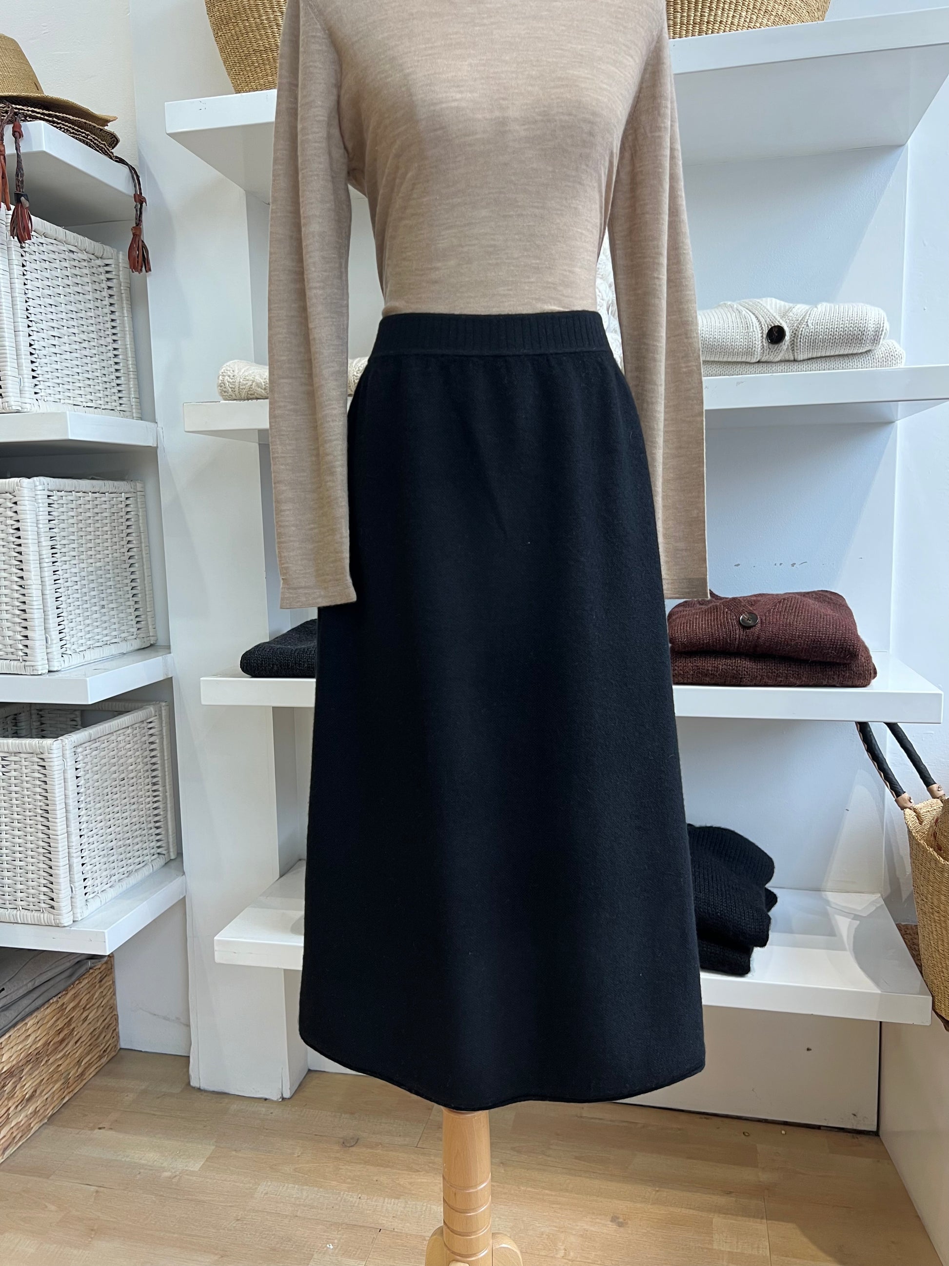 Elevate your wardrobe with the timeless elegance of our Cashmere Midi Skirt, crafted for effortless sophistication and luxurious comfort. Made from beautifully soft cashmere, this skirt offers gentle warmth while remaining lightweight and breathable, perfect for year-round wear.
